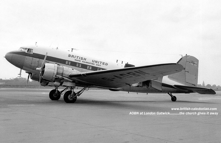 On 23rd January 1962 the announcement was made that the share holders of the British Aviation Services Group had agreed to exchange their shares for shares in Air Holdings. Silver City became part of Air Holdings, and AOBN was registered to Morton Air Services, who where an operating specialist services within the group. Below a photo of AOBN in British United Radio Calibration Unit titles, she is outside of the wooden hangar, Morton's hangar, at Gatwick.