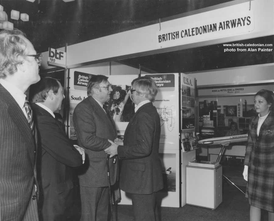 12 Ostend - Belgian Travel Fair - Alan greeting the Chairman of Sun Air Travel Group, with hostie Jan Culley on the stand