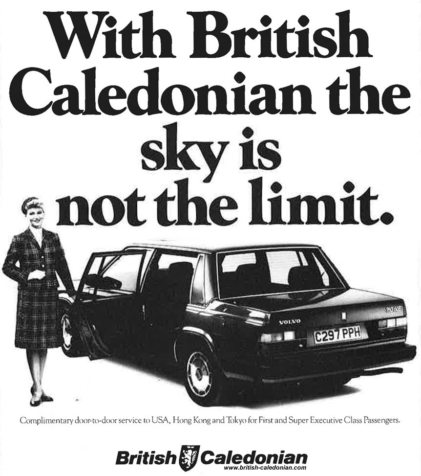 Anne sent in an advert for British Caledonian's Limo service, which is happily shown below. Seeing this led to recalling the TV advert for the service, and below I am pleased to say we have that too.