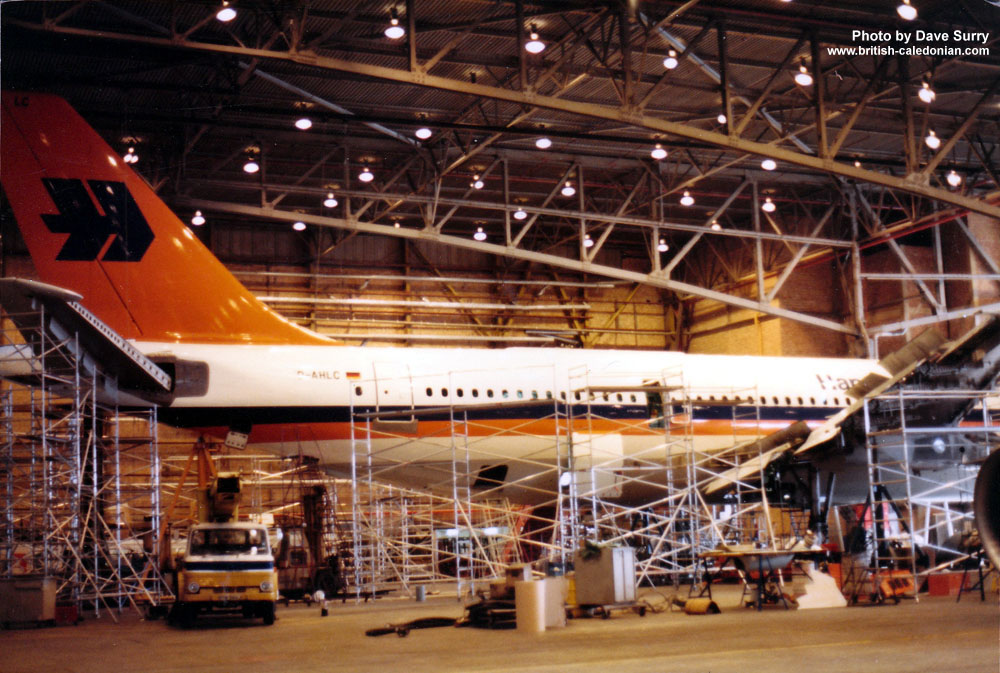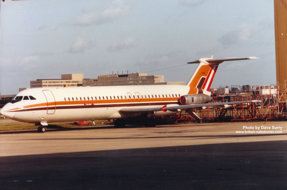 She was ex-British Midland (AXLL) then TransBrasil, then finally Faucett, she ended up stored in Lima for some 15months before being ferried to BAe at Filton in Oct 1983 and restored to the British Register in Dec 1983. Delivered to BCal in Jan 84 and finally flew in June 84 after reportedly much work being needed to bring her back to passenger use. My thanks to Richard Church, Dave Surry and Ian Macleod for their help in identifying this one.