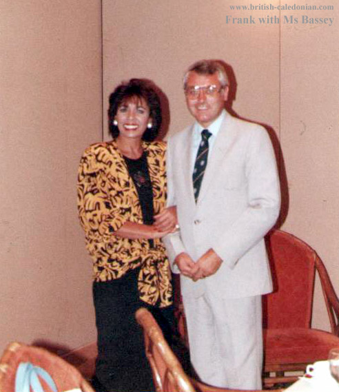 BCAL’s cabin crew; perfectly groomed and ready for the Gatwick-bound flight, passed by the hotel dining room on their way to board the bus for the airport. Ms Bassey spotted them and, skipping alongside a dozen surprised air hostesses, she began to sing, “I wish we all could be Caledonian girls”. Someone somewhere must remember this moment because it was an impromptu but masterly piece of timing and set the atmosphere for a good trip home.