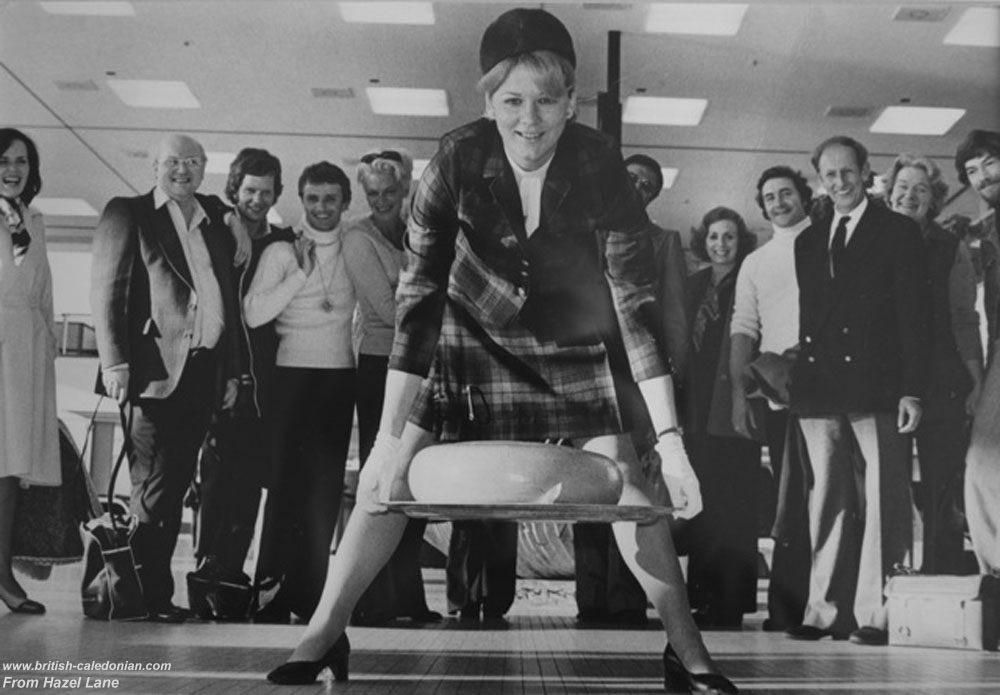 At the time Hazel worked for Hans Sennef, BCal Manager Benelux, and they were at Schipol to greet the original cast of the long running West End show, the Mousetrap. Which explains why Hazel has hold of a very large cheese!!