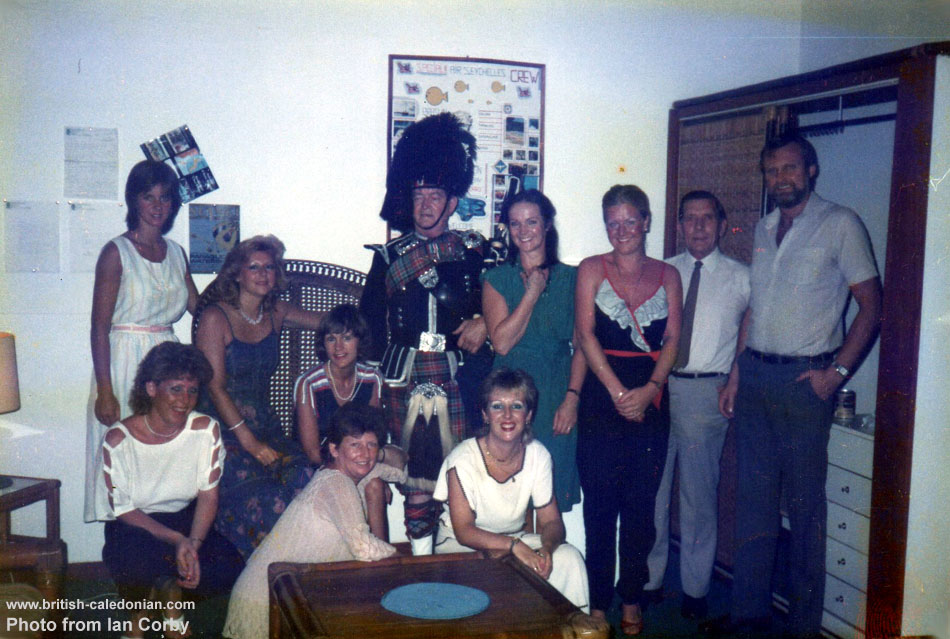 Seychelles - The crew on one of the flights we did for Air Seychelles when we took one of the BCAL pipers down for Burns Night at the British High Commission which all the crew attended. In the photo the chap with the beard is Jim Stott; the flight engineer on DC10.