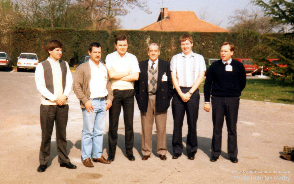 BCAL A320 course Mar 1988 ( BA 'took us over' that month ) From left to right Martin Johnson, Julian Birkbeck, David Stevens, (Airbus instructor), Andy Green and Greg Watkinson.
