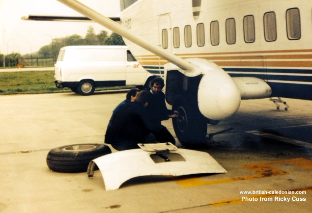 A little disagreement between a set of mobile steps and the propeller ... The pin popped out and as the land-rover stopped , the steps carried on . The prop was bent, 3 engine ferry to Southend.