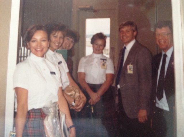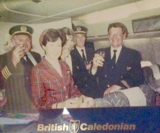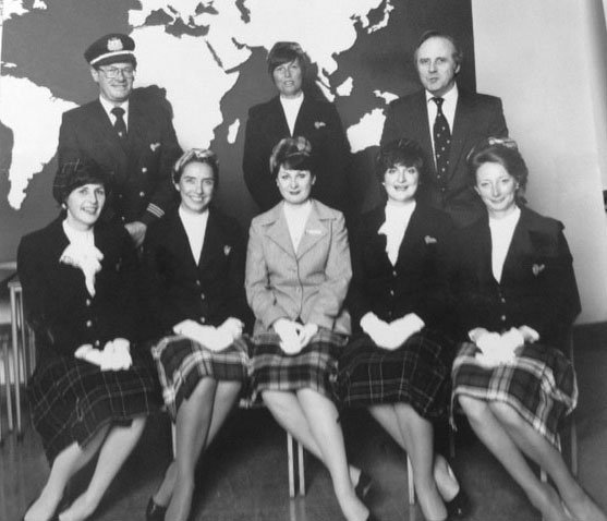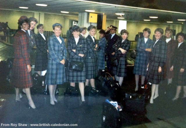 A 747 crew, a lot of tartan, waiting for their bags at Kai Tak Airport, Hong Kong