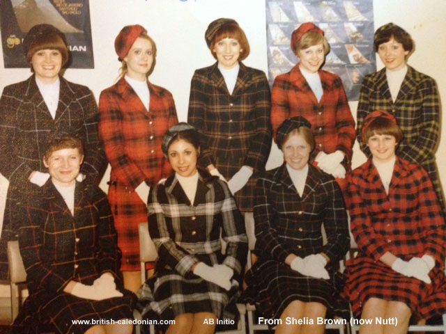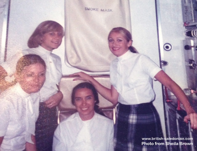 Sheila, top left, with Purser Sue Slocombe (seated) onboard a DC10 late 70s / early 80s