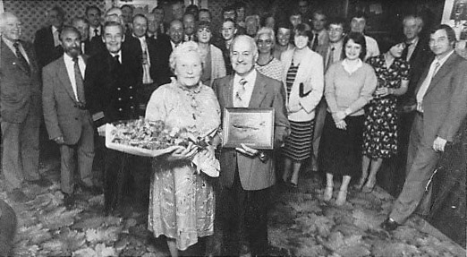 Pictured here with Mrs Ely at his party at the Wingspan Club after a presentation by General Maintenance Manager Arnold Sheead.
