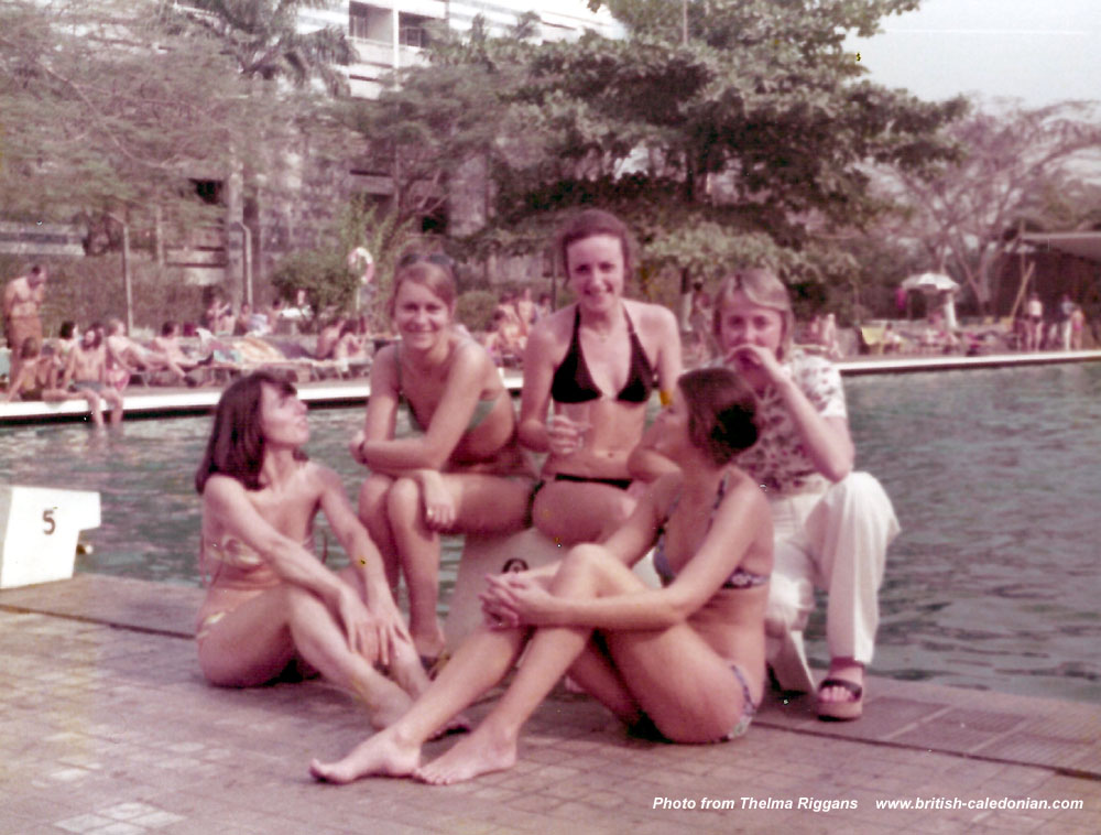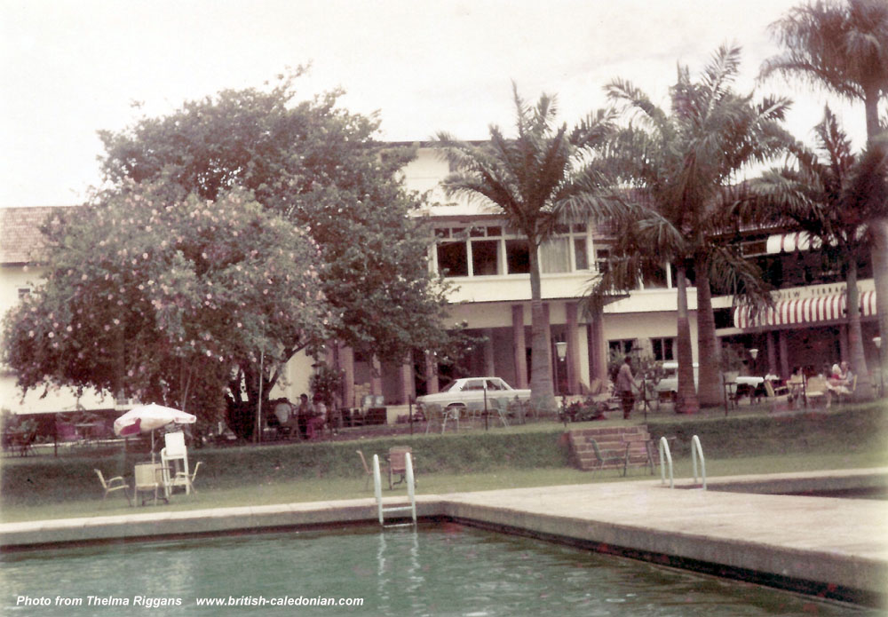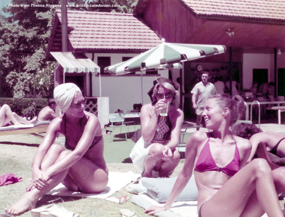 The Norfolk Hotel, Nairobi - By the pool with Kathy Howe, Jill Mildren & Judy Welch. With Taff Jones in the background