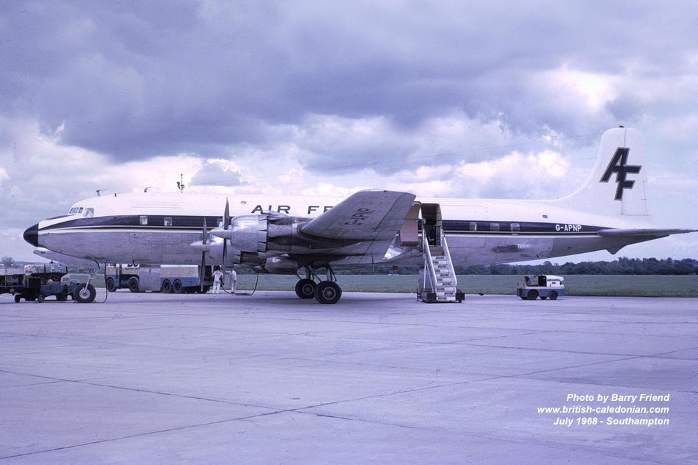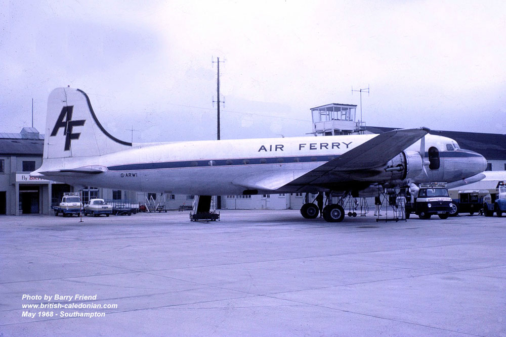Group airline Air Ferry and one of their Douglas C54 / DC4s G-ARWI seen here at Southampton in May 1968.
