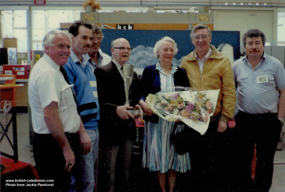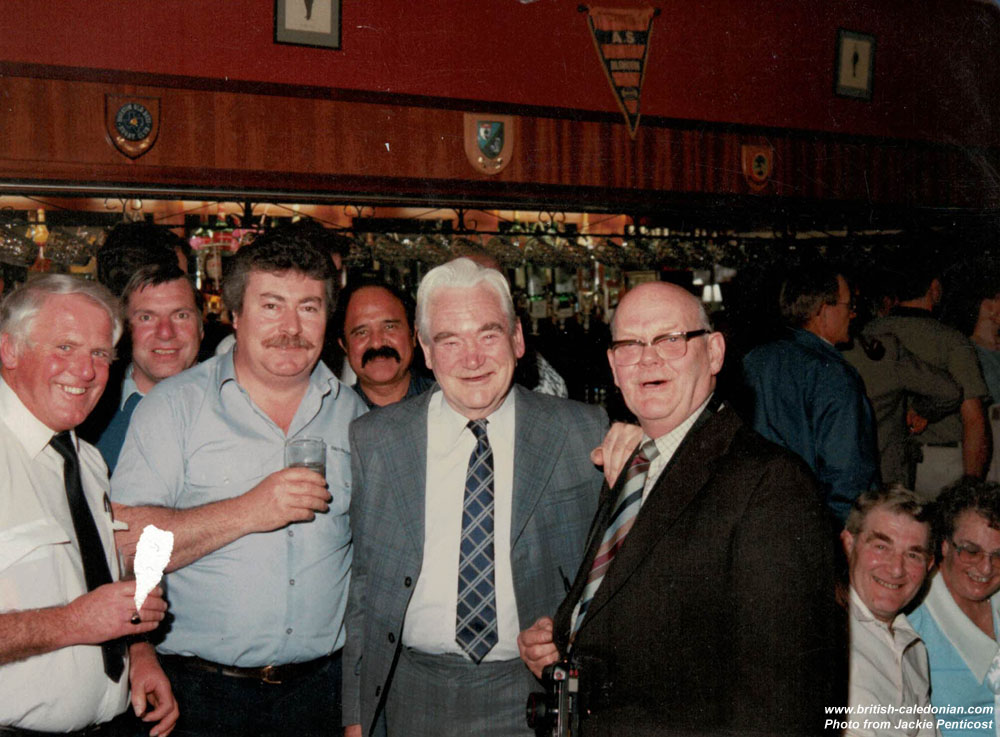 Left to right, Don Mackinder, Bob Hand, Derek Hooker, Buster and his wife, Les Scott and Cyril Pickett