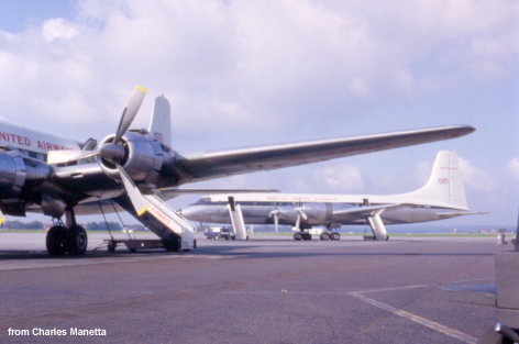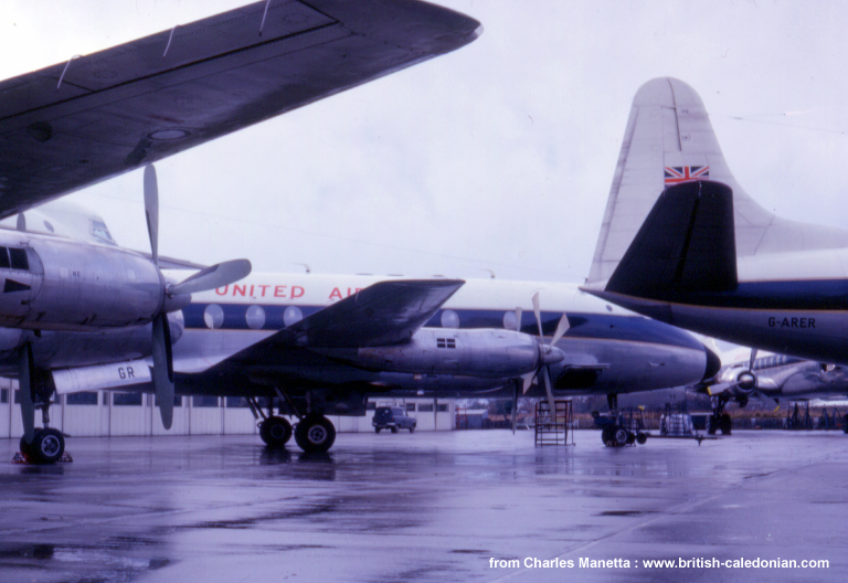 BUA Britannia and DC-6B on the Gatwick ramp