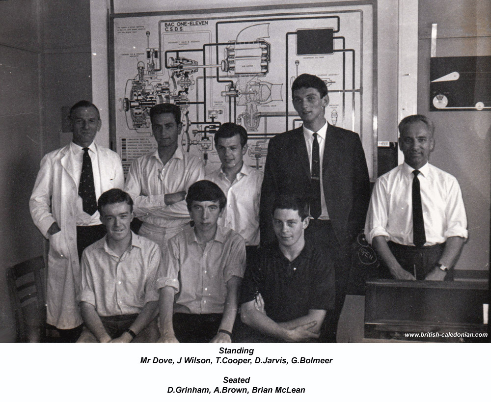 Mick Morgan recalls, BUA started 5 Year Indentured Apprenticeships in September, 1963. There were 4 Engine/Airframe Apprentices, Tim Rosner, Richard Wilson, Pete Barnes and John Sidebotham and 2 Avionic Apprentices, Jim Brenchley, and my self, Mick Morgan.