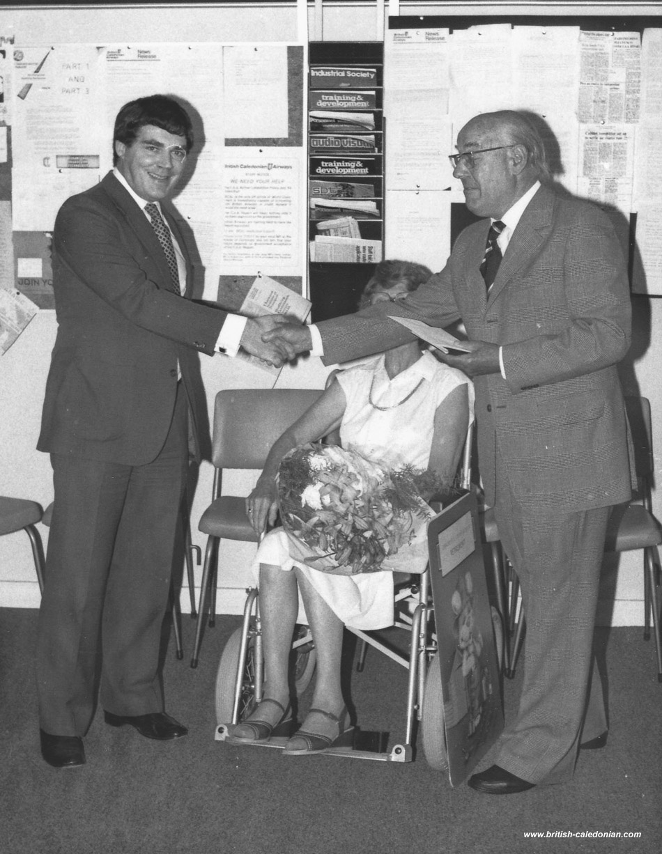 The combined Engineering and Flight Crew ground training staff outside the BCAL Training Centre in Fleming Way; Crawley