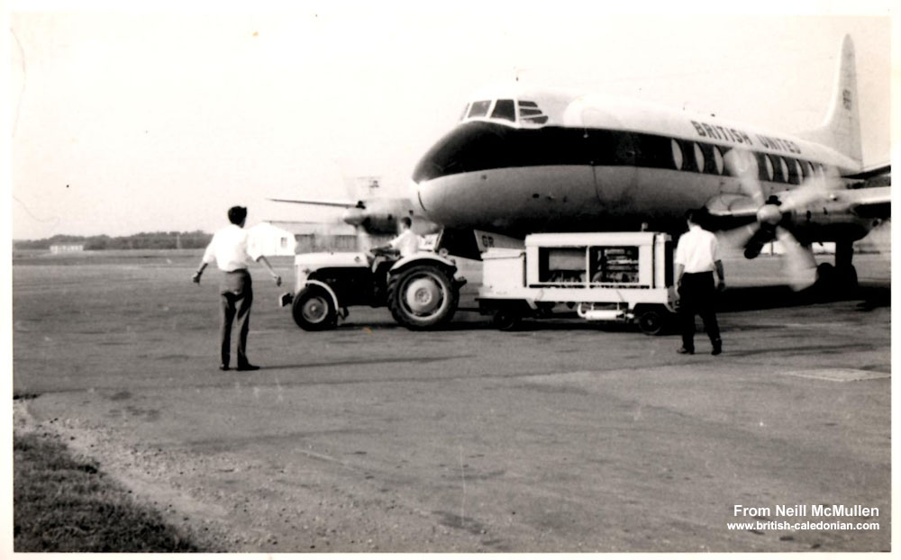 Neil has kindly sent in a photo of his days at Bournemouth with BUA, with Viscount G-ARGR under his marshalling control