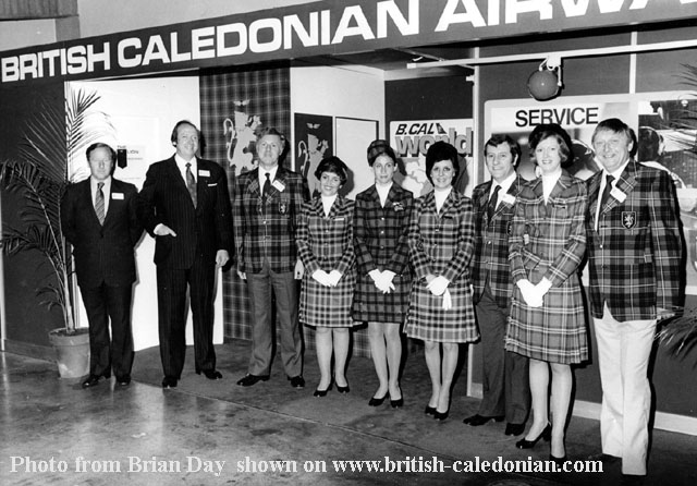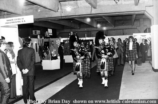 C British Industrial Fair in Sao Paulo in 1974. BCal Pipers en-route to out stand for the opening ceremony.