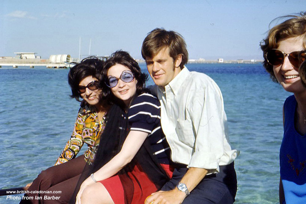 Geoff Walford posing with the Egyptian Hosties - Saudi Hadj March 1972