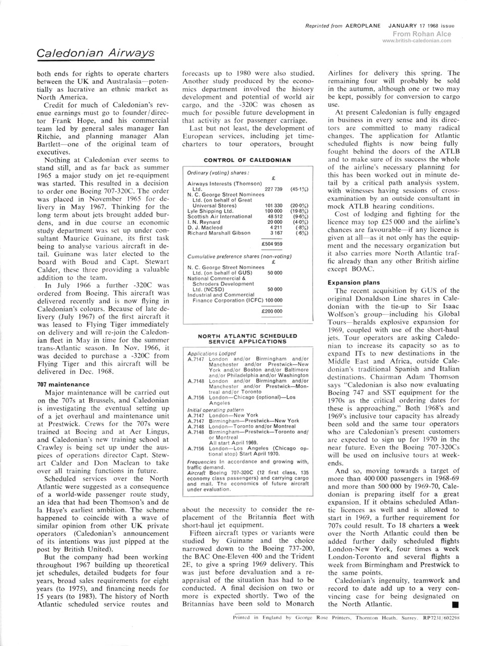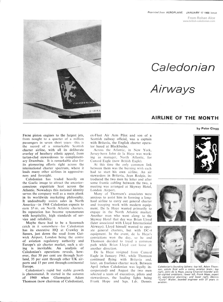 "Aeroplane" Magazine of 17 Jan 1968 featuring Caledonian Airways as "Airline of the Month"
