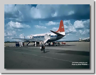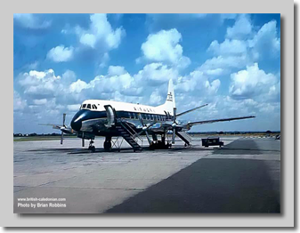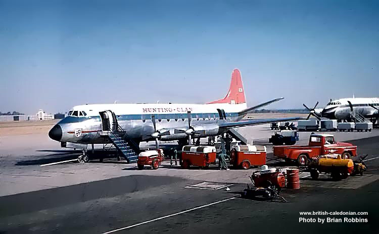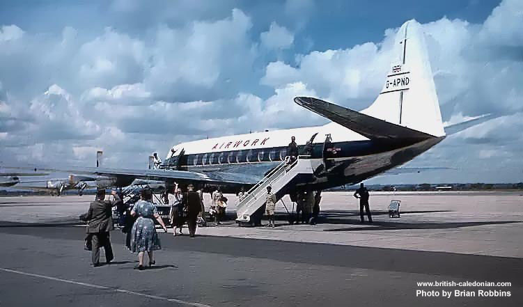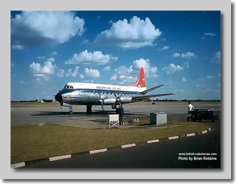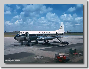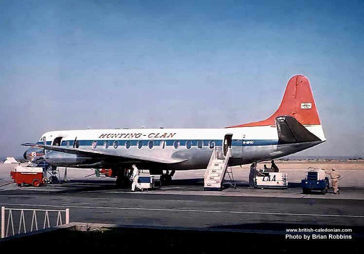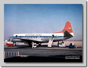 When the British Government finally gave permission for Hunting and Airwork to use modern turbo-prop Viscounts on their Colonial coach services, both airlines soon deployed Viscounts. Here we can see both airlines with their Viscounts down route in Africa on Safari services.