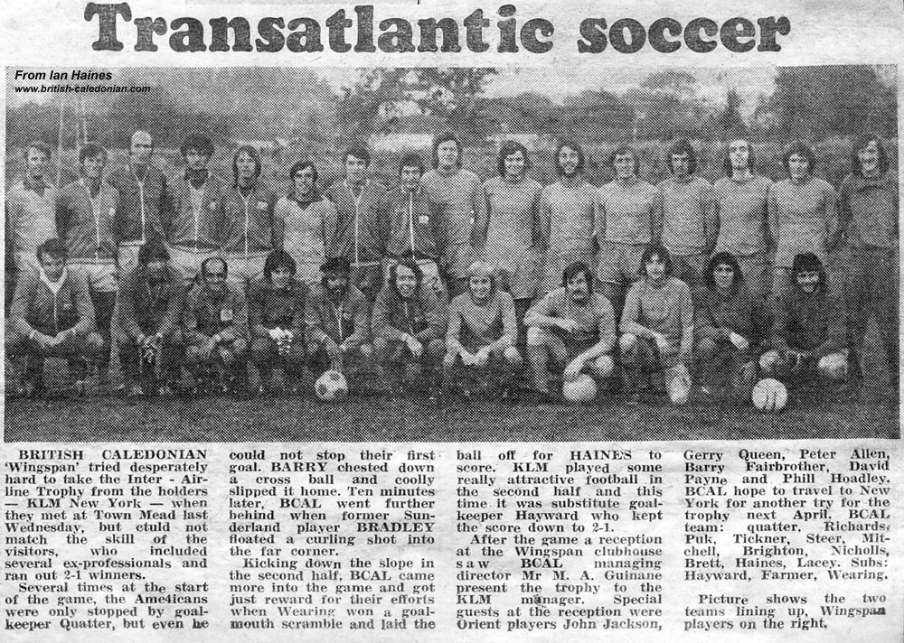 However in 1976 BCAL took former Chelsea star Ian Hutchinson to stregthen the BCAL team,to try and win the Inter Line trophy. This was all in vain, there was some compensation though, the BCAL team were able to meet PELE the world famous Brazillian footballer.