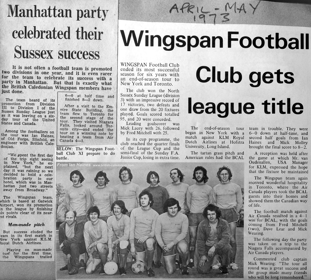 The BCAL team put in some fine performances considering many of the KLM team were professional footballers playing in the NASL. The late Gordon Bradley was the man who enticed PELE to play for the NY Cosmos,which was the team many of the KLM team played for, for most of us a great experience.