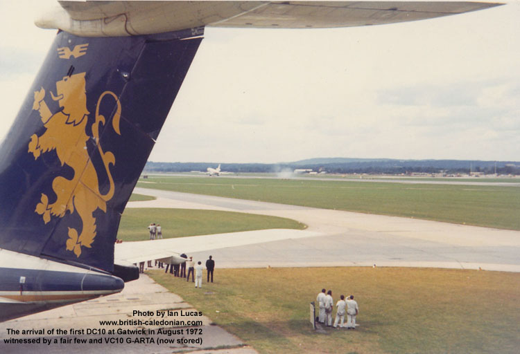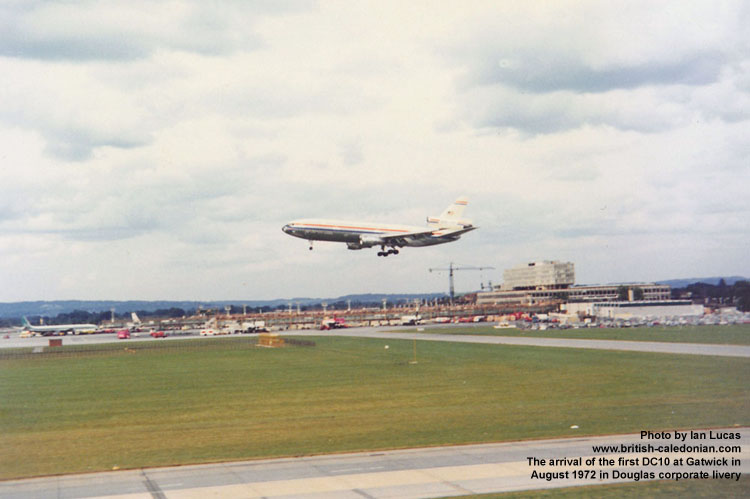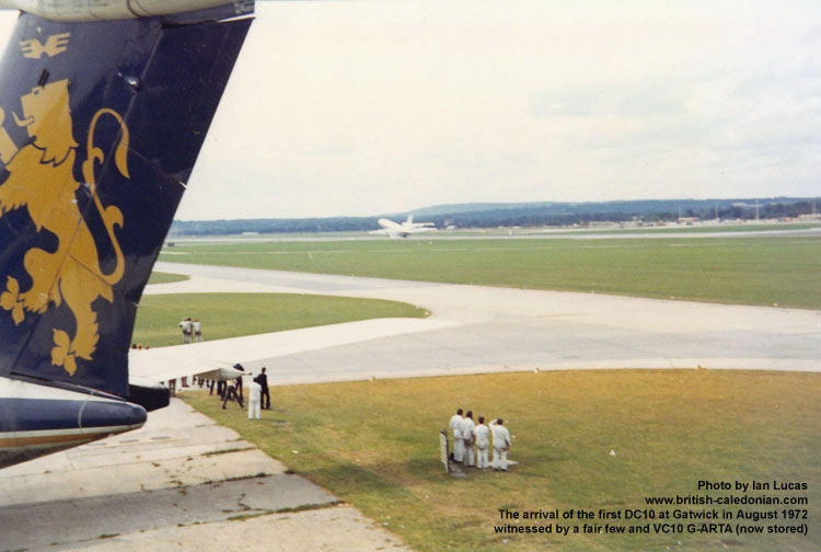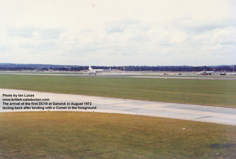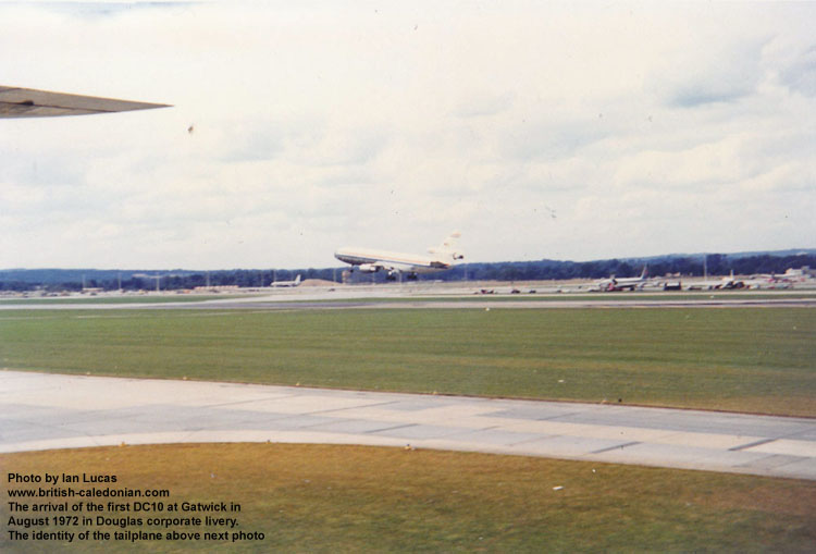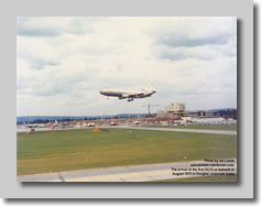 Thereafter a series promotional flights were made from Heathrow and Gatwick; Ian was on hand to record the arrival of the very first DC10 arrival at Gatwick.