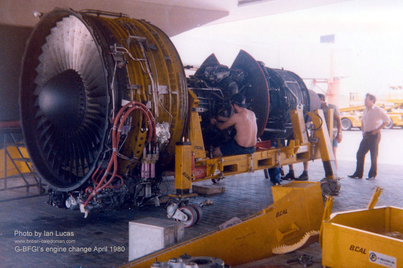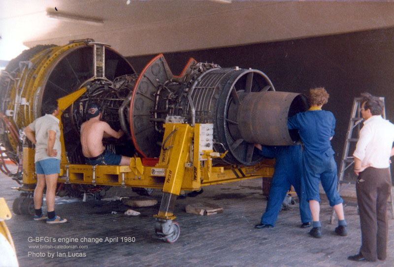 I was part of the team who went out the next day to change the engine in Lagos. There were two teams - one from the hangar to remove the engine and another from the engine bay to assemble the spare engine. BCAL used the split and shift method. This consisted of the spare engine being separated at the fan assembly and the two parts of the engine then transported in two special stands. Doing this meant that the engine and associated equipment could be carried in the cargo hold of the DC10 or similar size aircraft.