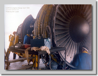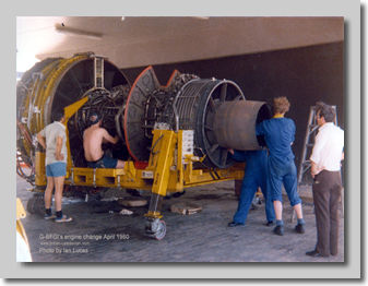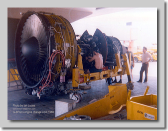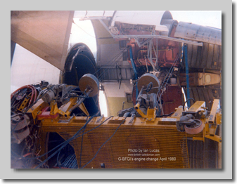 Ian's pictures of the engine change at Lagos certainly brought back memories as I was the engineer on duty when both engines blew up. Both engines failed very shortly after rotation and some people say they saw the shower of sparks that came out of the engine on the first failure.