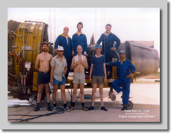 We then all helped the engine bay team to complete the assembly of the spare engine and it was decided that we would raise the new engine into position before going to the hotel for some rest. It was now some thirty-seven hours since any of us had had any sleep