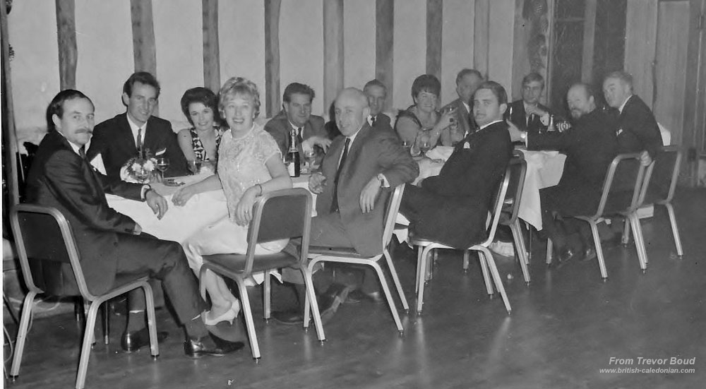 The photo was taken in 1966 at the Gatwick Manor restaurant. It was hosted by Boeing on their first visit to Caledonian Airways (Prestwick) Ltd, soon after the 707 orders were announced.