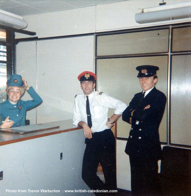 Around 1966, Hostie Beatrice Falher, Trevor (Service Control Supervisor) and Jerry Cornish (Load Control Supervisor)