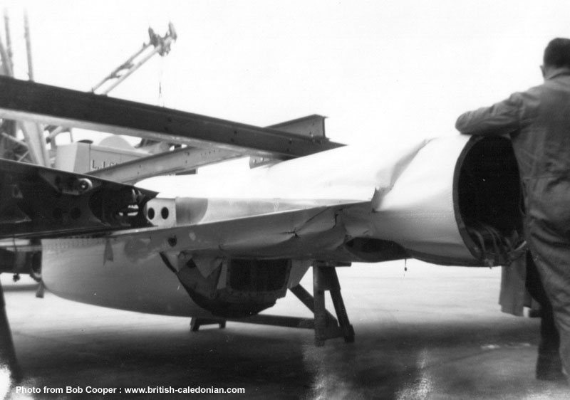 The jack punctured the fuselage and the tail plane struck some maintenance staging platforms.